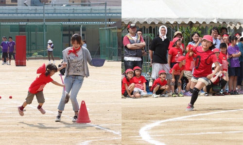 学童児さんもOB&OGさんも親御さんも一緒に参加する学童の運動会は応援にも熱が入ります。今年初めて参加の新1年生も、とってもよくがんばりました♪
