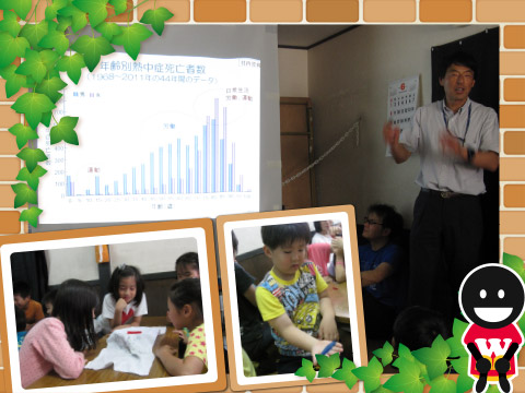 子ども達には少し難しい内容でしたが、熱い季節の給水がとても大切なことが分かったと思います。