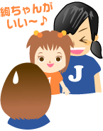 | だってちゃうわ。絢ちゃんだってしんどいやろ〜?ほんじゃ、こっちおいで。まのっちゃんが座らせたろ♪ | |